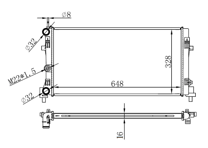 RADYATÖR BRAZİNG A1-IBIZA V-POLO 1.2-1.4-1.6 09 AC KLİMASIZ MEK 648x326x16 6R0121253